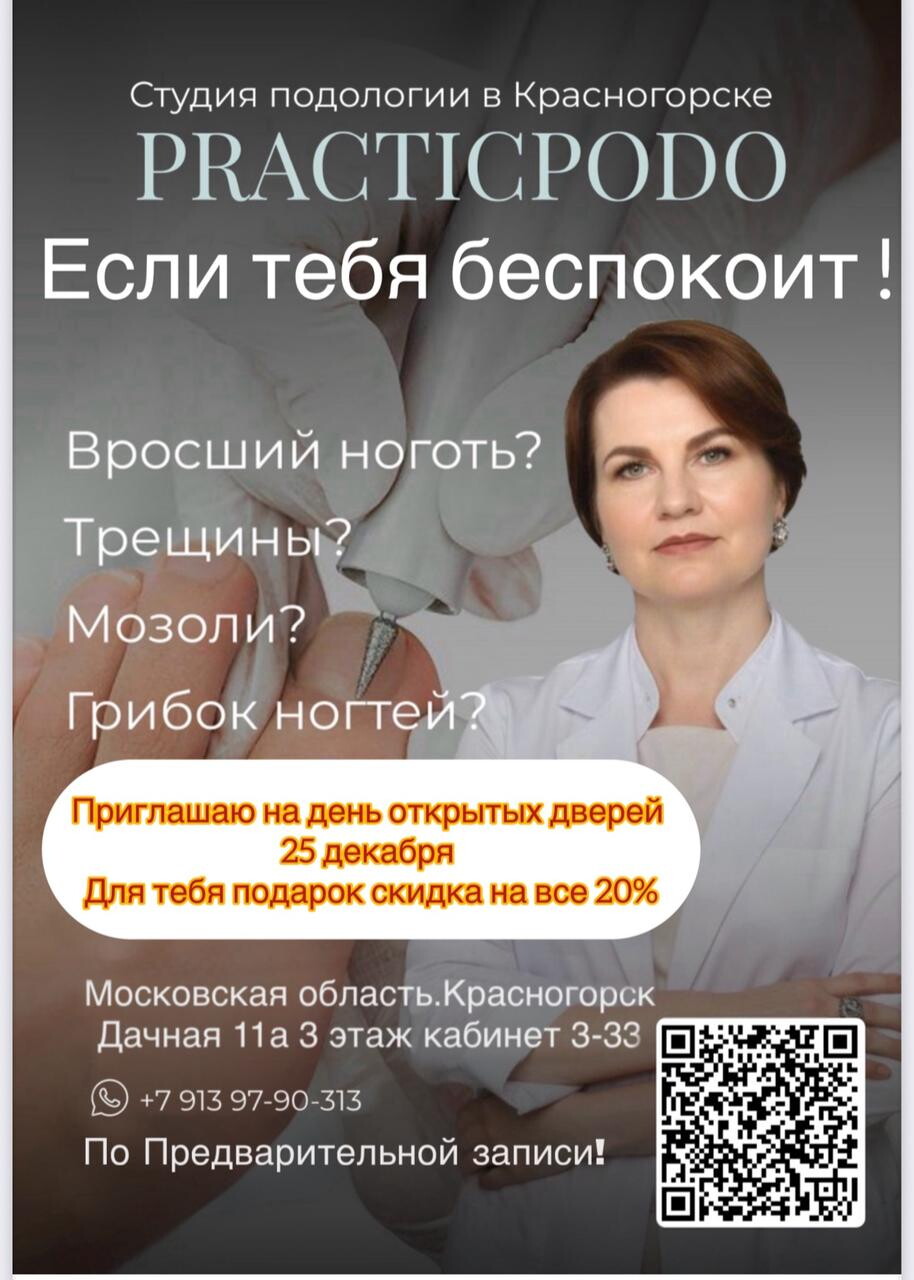 Большое спасибо Анне, лучшему подологу г. Красногорска, которая решила мою проблему с вросшим ногтем. Ее волшебные руки сделали невозможное за один прием. После использования коррекционной системы мои ногти стали просто красивыми, здоровыми, ровненькими. Огромная благодарность за Ваш труд!